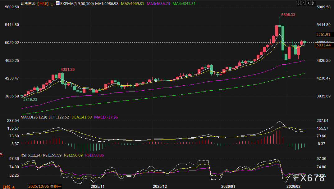 汇通财经APP讯――2026年2月的第二个星期,全球金融市场的心脏,似乎正随着黄金那剧烈跳动。金价在5000美元关口,上演了惊心动魄的“过山车”行情:周一(2月9日)现货黄金强势收涨2%,收报5059美元附近;周二(2月9日)亚市早盘却急转直下,一度暴跌超70美元,至4987美元/盎司附近,随后快速回升,目前交投于5030美元/盎司附近。整体来看,美元下跌、地缘政治不确定性和央行持续购买仍给金价提供支撑,本周将迎来美国多项关键经济数据,投资者还需留意市场对美联储降息预期的变化。