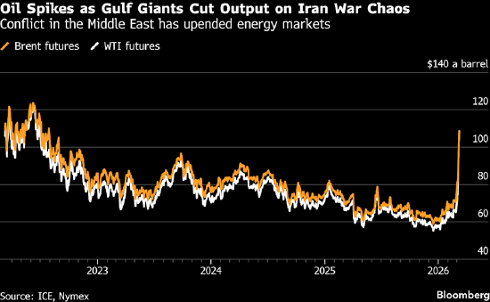 随着包括欧佩克领头羊沙特阿拉伯在内的更多中东主要产油国减产,加上关键航道霍尔木兹海峡油轮运输陷入停滞、全球供应受阻,油价一举突破每桶100美元。
