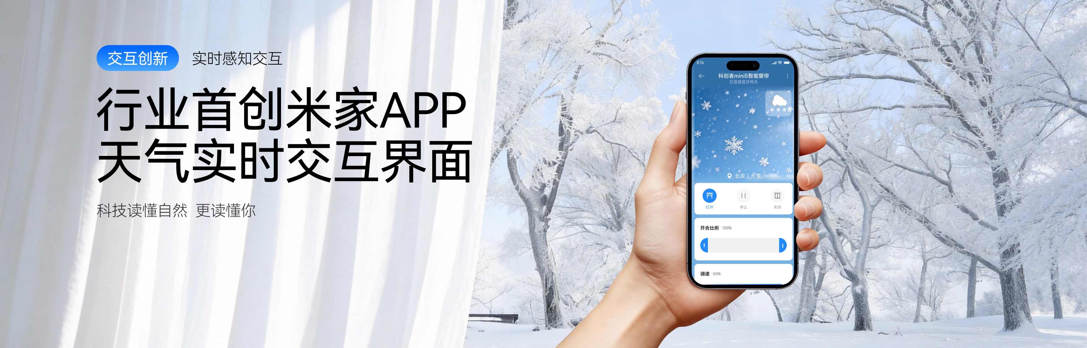 智能天气感知:产品与米家APP深度整合,可根据实时天气自动调整窗帘状态,并匹配42种不同的UI界面。