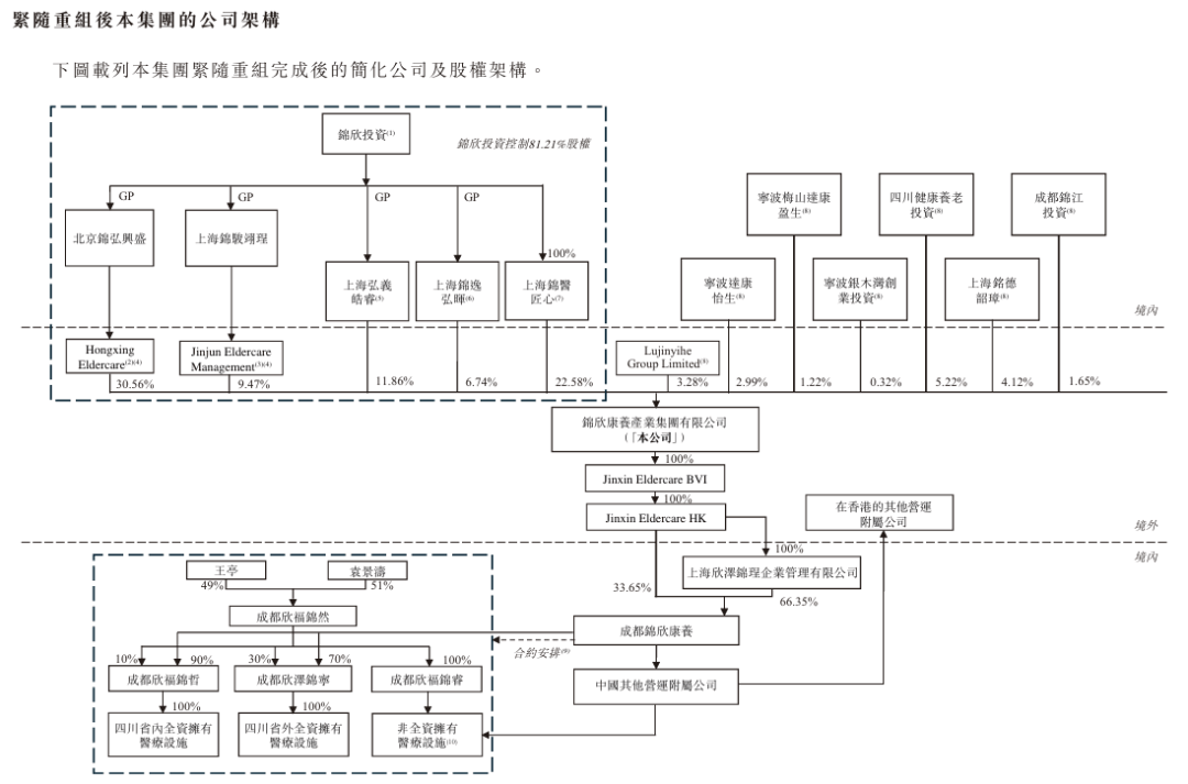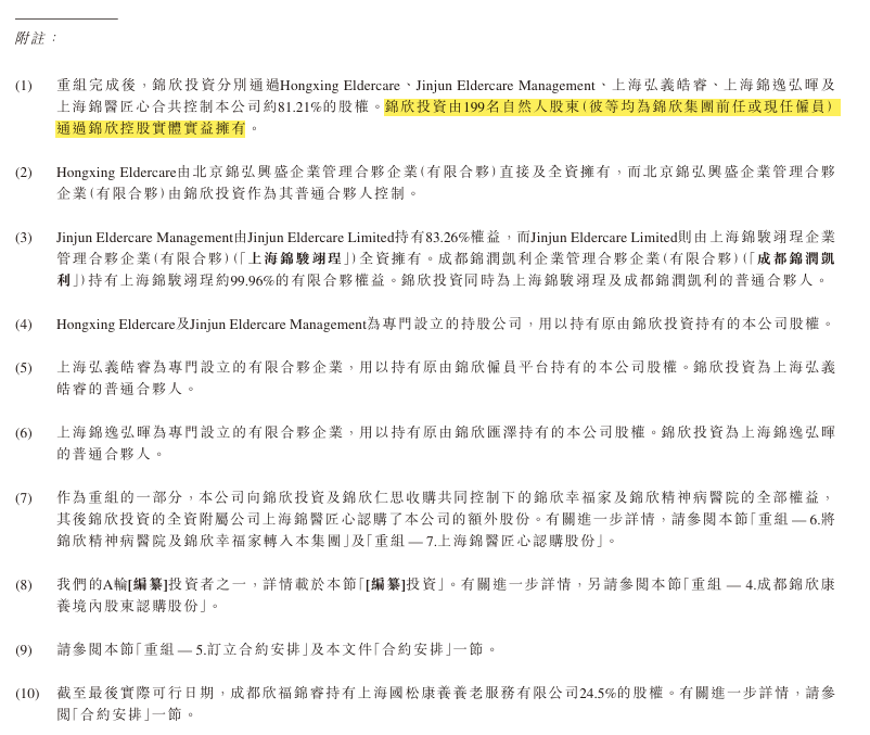 从早期风险投资,到政府产业资本,再到顶级市场化PE,最后到全球医疗专项基金――锦欣康养的股东结构变化,清晰地反映了养老赛道从“边缘观望”到“核心资产”的认知变迁。IPO前,锦欣投资合计控制公司约68.60%股权,其中199名锦欣集团前任或现任雇员通过持股平台实益拥有。