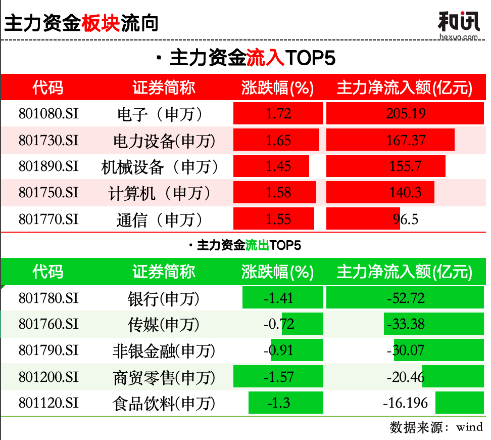 其中电子、电力设备、机械设备、计算机和通信五大板块合计净流入超过765亿元。这表明当前市场资金更倾向于成长型行业和科技类资产。