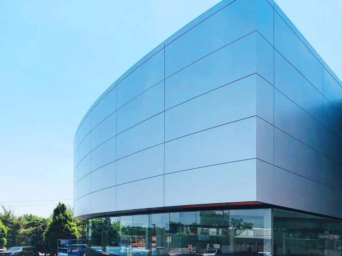 针对安装复杂的行业痛点,卓士高也将“安装迅速”纳入九大核心技术,针对户外幕墙的复杂造型需求,卓士高推出了预制盒子安装系统,通过对板材进行精密的预铣削与折边处理,将平面板材转化为结构稳固的盒式单元。这种构造方式不仅大幅提升了安装效率,更通过精密的插接设计增强了整体系统的密封性能与抗风压能力,解决了异形幕墙安装复杂的问题。