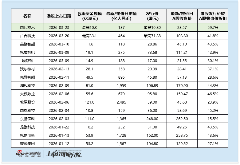 其次,国民技术自身条件不占优。在2026年已启动的A to H项目中,其最新市值仅为131亿元人民币,处于垫底位置。较小的市值体量本身就对机构资金的吸引力有限,往往需要更高的折扣来弥补流动性风险和关注度不足的问题。