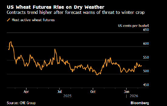 Lachstock Consulting在报告中指出,美国冬季反常的温暖天气可能减少积雪覆盖并刺激作物提前生长,使作物更易受后期寒流影响。