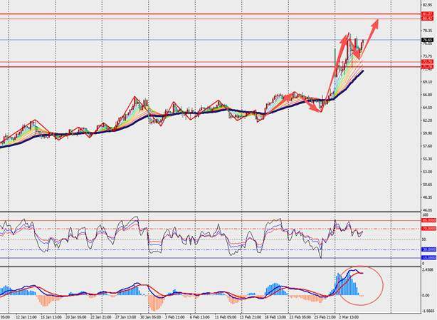 第一阻力位:79.00 第一支撑位:74.00