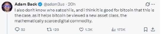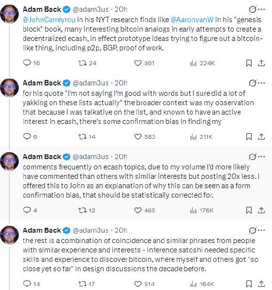 英国密码学家、Blockstream首席执行官亚当·巴克(Adam Back)周三在X平台发帖,再次否认自己是比特币创始人中本聪。