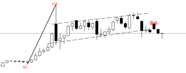 日线级别来看,美元油WTI在美国和伊朗战争的初期,出现了明显的单边上涨走势。但是,3月9日触及113美元后,快速回落。截至目前,美元油已经高位横盘震荡了一个月之久。上周三开始,k线有突破通道下轨的迹象,本周突破被印证。如果今日的k线以长阴线收盘,或者收盘价在90美元下方,美原油后市发展可能偏空。