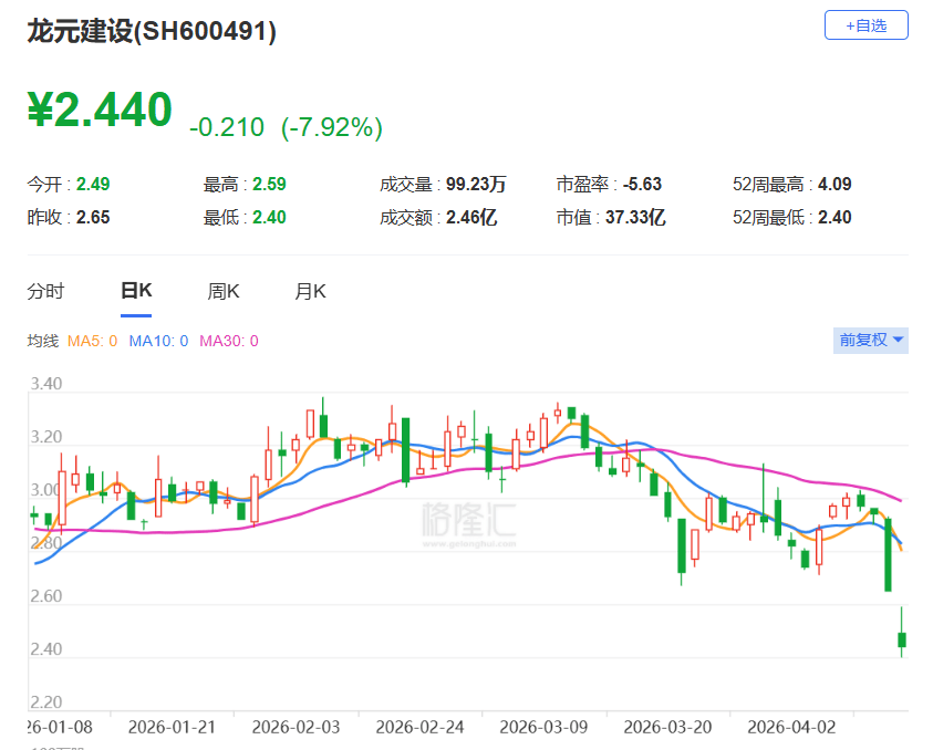 昨日跌停的龙元建设(600491.SH)再度下跌近8%,现报2.44元,成交额放大至2.46亿元,总市值不足40亿元。消息上,龙元建设13日公告,截至目前,公司及控股子(孙)公司逾期债务本金及利息金额合计11亿元,占公司最近一期经审计净资产的10.9%。