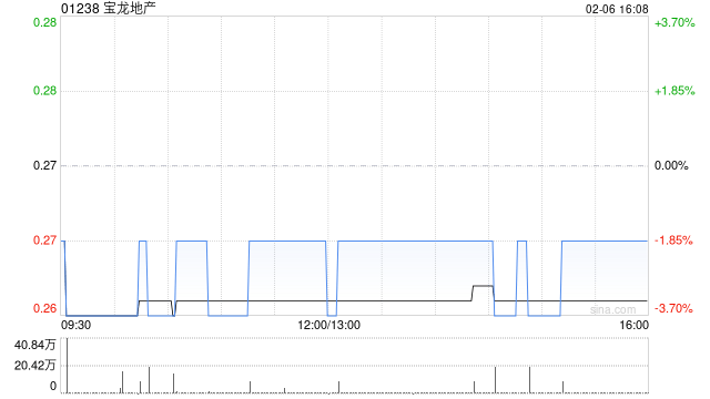 宝龙地产1月合约销售总额约为4.7亿元 同比减少31.98% lnradio.com 2026年02月07日 15:02 4 0 宝龙地产(01238)发布公告,本集团截至2026年1月31日止1个月的合约销售总额(连同共同控制实体及联营公司的合约销售额)约为人民币4.7亿元,同比减少31.98%,及合约销售总面积约为42,812平方米。