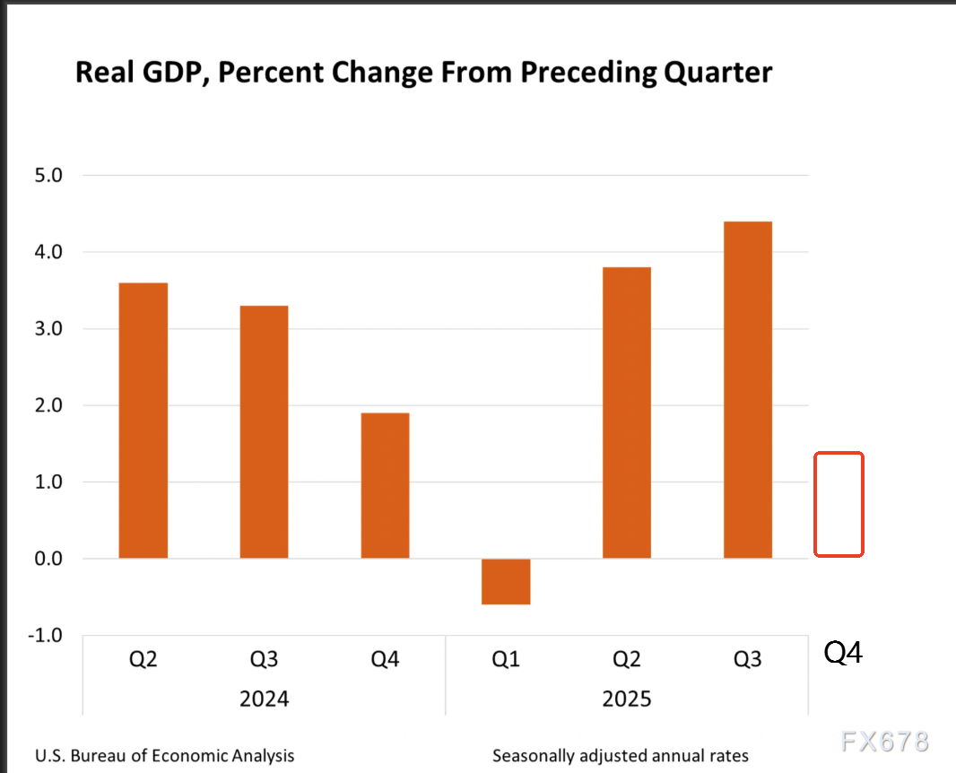 汇通财经APP讯――美国经济分析局(BEA)公布的2025年第四季度GDP首次预估数据显示,实际GDP年化增速录得1.4%,低于市场预期,较第三季度4.4%的高位明显回落,呈现放缓态势,同时PCE超预期,出现增长放缓,通胀刚性的情况,后期可能引起部分市场对滞胀的担忧。