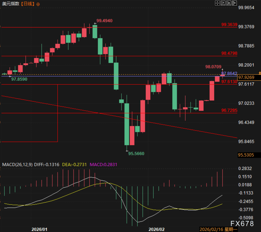 本周美元指数凭借强劲经济数据、美联储鹰派基调及地缘避险情绪,已走出强势反弹,有望创下10月以来最佳单周表现。