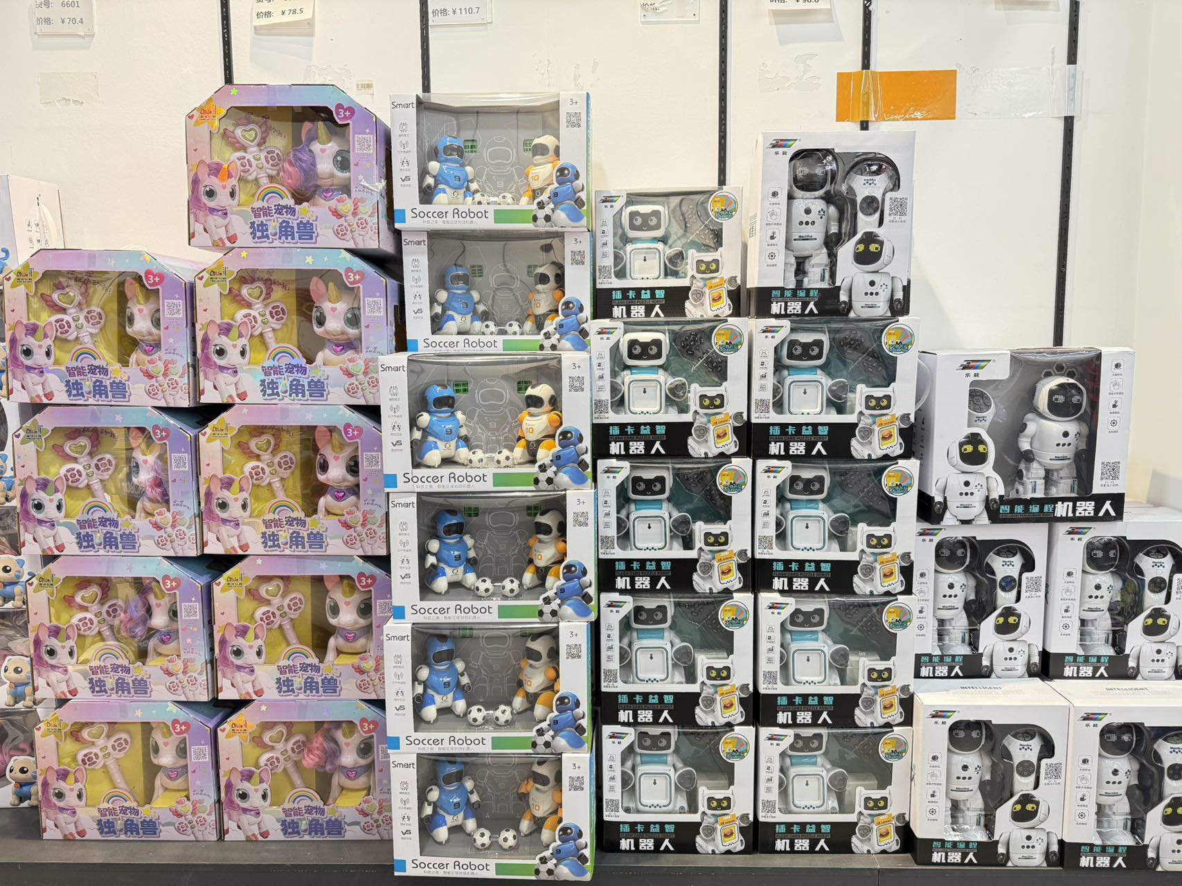 时代财经注意到,宝奥城和1688玩具品类众多,婴童玩具、积木、电玩、遥控等塑料玩具一应俱全,令人眼花缭乱的货架上,一个新兴的玩具品类尤为引人注意――AI玩具。