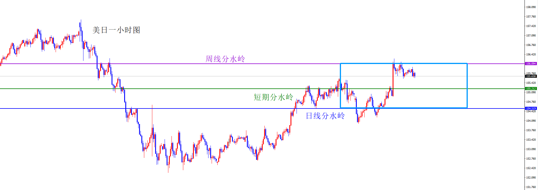 短线分水岭155.20,短期偏向于154.50-156.10区间震荡,中间155.20位置为震荡区间分水岭