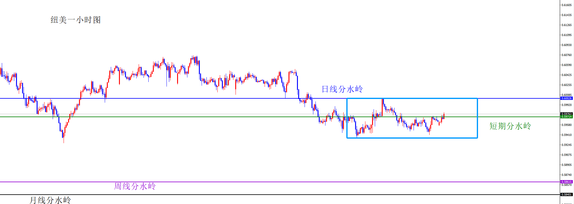 关键分水岭0.6070区域,短线偏向于0.5940-0.6000区间震荡,中间0.5970为震荡区间分水岭