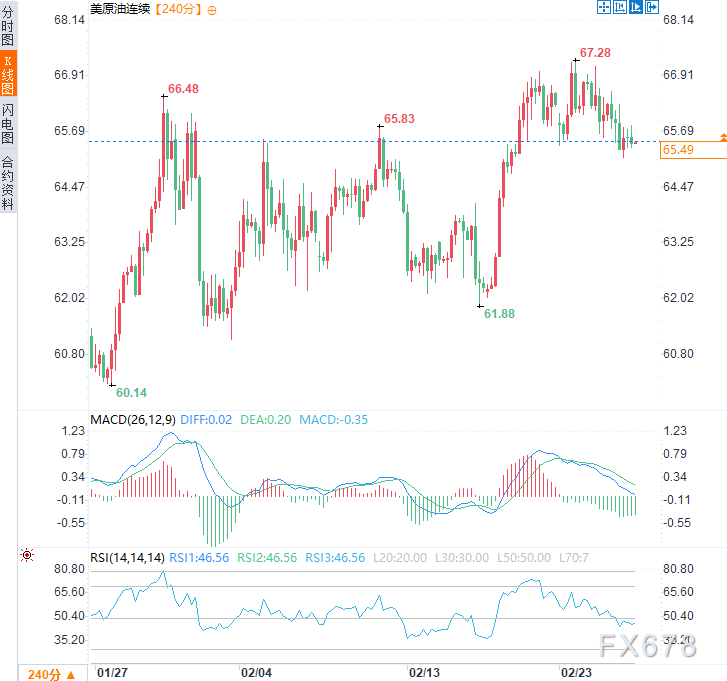 汇通财经APP讯――周四(2月26日)亚市时段,美原油价格小幅上涨,现交投于每桶65.50美元附近,日内涨幅约0.17%,市场静待今日晚些时候的美伊日内瓦谈判。美方在完成大规模军事部署后态度强硬,要求将导弹计划纳入谈判议题;伊朗则坚持议题仅限于核计划,并要求美国同步解除制裁。双方在导弹射程评估上存在明显分歧,本轮谈判结果将直接影响地缘风险溢价及油价走势,若外交突破有望缓解供应担忧,若谈判破裂则可能再度推升油价波动。