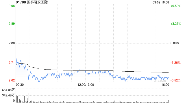 国泰君安国际获瑞银集团增持242.7万股 每股作价2.799港元 lnradio.com 2026年03月03日 08:21 3 0 香港联交所最新数据显示,2月24日,瑞银集团增持国泰君安国际(01788)242.7万股,每股作价2.799港元,总金额约为679.32万港元。增持后最新持股数目约为7.64亿股,最新持股比例为8.02%。