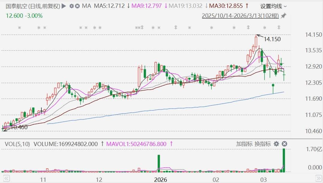 港股市场国泰航空(0293.HK)盘中一度跌4.7%,报12.38港元,截至目前成交额放大至超20亿港元。