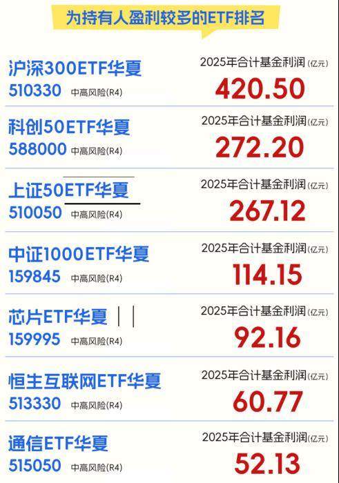 根据最新披露的2025年年报显示,华夏基金旗下公募产品合计为基民赚钱2356.46亿元(数据来源:华夏基金,2025年底,剔除联接基金)。一起跟小夏一起来盘一盘那些为基民赚钱较多的产品都有哪些~