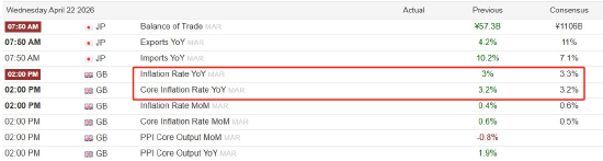 本周二,英国公布三月份核心CPI年率;本周五,日本公布三月份核心CPI年率。我们知道,国际油价在三月份出现了大幅上涨,所以英国和日本的通胀率会受到影响。