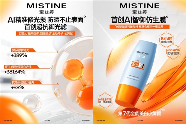 MISTINE蜜丝婷首创诺奖共研“超抗御光滤”及“AI智御膜科技”