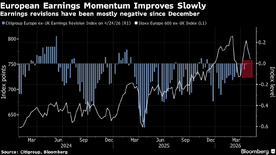 与此同时,基于目前已公布业绩的公司数据,欧洲企业第一季度盈利预计同比增长4.9%,高于彭博行业研究在财报季前汇编的共识增幅预期2.6%。