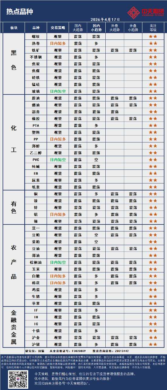中天策略:4月17日市场分析