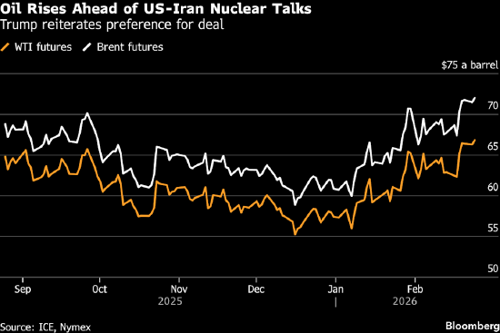 油价上涨,因投资者权衡伊朗核协议达成的可能性。美国总统唐纳德·特朗普表示,他更倾向于通过外交途径解决问题,但也警告称,若无法达成协议,伊朗将面临相应后果。