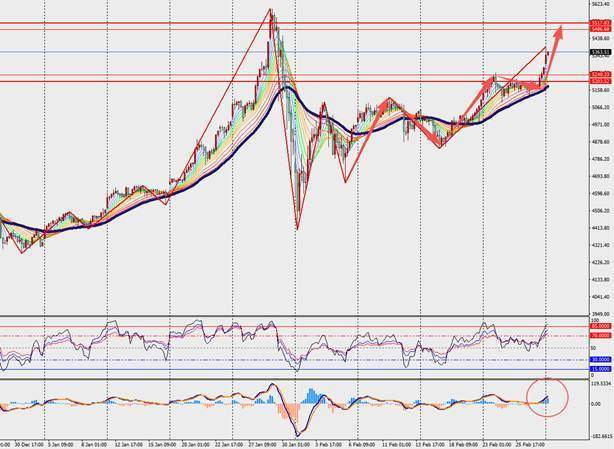 第二阻力位:5400.00 第二支撑位:5327.00