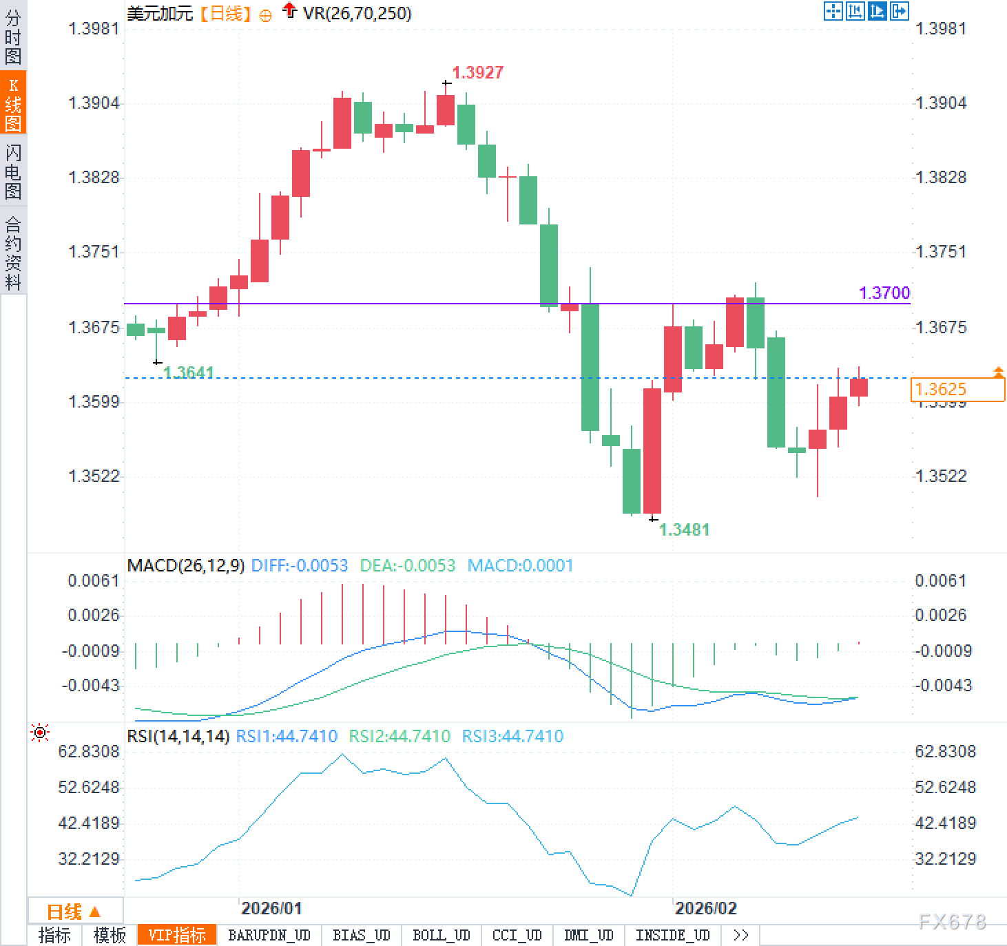 汇通财经APP讯――2月13日周五,美元兑加元北美时段交投1.3620附近,正处于年内波动区间的偏下沿位置。表面上看似乎接近支撑位,但市场并未出现明显的抄底热情。相反,汇率走势呈现出典型的横盘震荡特征,自2月以来始终难以打破僵局。这种胶着状态的背后,并非缺乏驱动因素,而是多空力量形成了罕见的对冲格局。