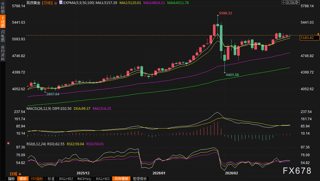 (现货黄金日线图,来源:易汇通)北京时间08:07,现货黄金现报5183.10美元/盎司。