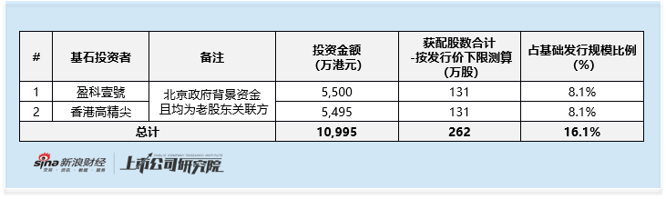 本次IPO仅引入盈科壹号和香港高精尖两家基石投资者,合计认购约1.1亿港元,按发行价下限测算仅占基础发行规模的16.1%,认购比例相较近期项目明显偏低。更关键的是,两家投资者均为具有北京政府背景的资金,且与公司老股东存在关联,属于非市场化的“亲友单”。基石投资者中缺乏有市场影响力的长线外资或产业资本,反映出公司在前期市场推介中未能获得主流机构投资者的充分认可。