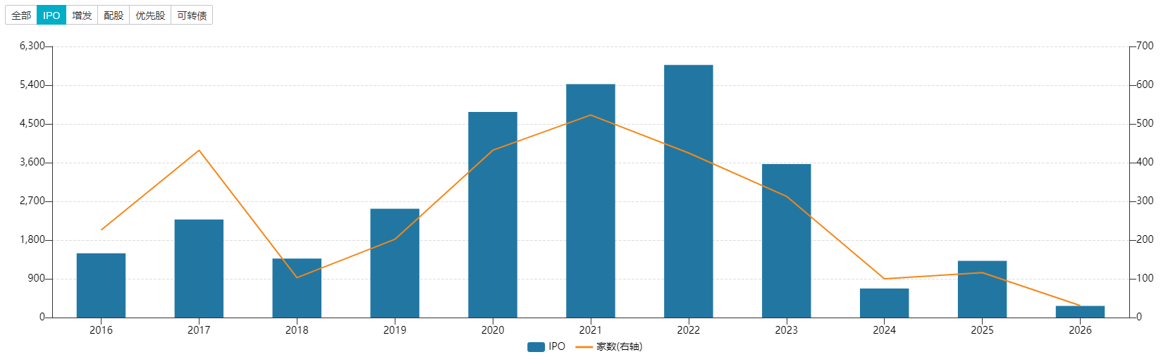 自2023年的“827新政”以来,一级资本市场经历了较大的调整,2023年全年IPO金额出现六年来的首次下滑,2024年则是进一步收紧,IPO家数与金额均“脚踝斩”。2025年,市场才呈现复苏态势。