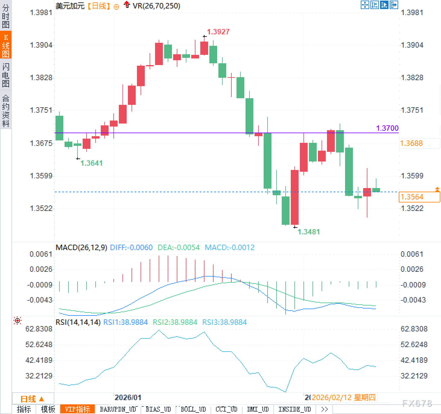 汇通财经APP讯――2月12日周四,美元兑加元欧洲时段交投于1.3560附近,处于2025年以来的低位区域。尽管最新公布的美国非农就业数据好于预期,一度推动美元快速走高,但随后涨幅几乎全部回吐,显示出市场对这一利好反应有限。表面上看,强劲的就业数据本应支撑美元走强,并削弱美联储年内大幅降息的预期,但市场的实际反应却是“先涨后撤”,说明交易员并未完全买账。