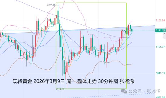 3月10日:上交易日周一(3月9日):国际黄金因周末地缘局势风险加剧,高开于5179.47美元,但油价据此开盘暴涨逾30%,点燃了市场的通胀担忧,而使得金价在早盘先行录得日内高点5197.18美元后,一度走低跌至5014.22美元的日内低点;