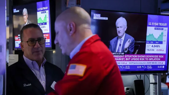 10年期美国国债收益率在鲍威尔讲话后下滑。这一基准收益率最新下跌逾9个基点,至4.344%。