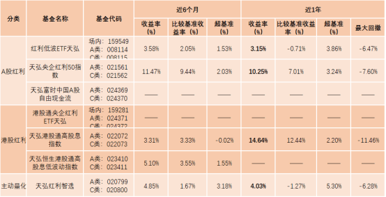 值得注意的是,针对红利资产,天弘基金布局了众多相关基金供投资者选择。