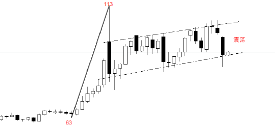 上图是美原油WTI的日线级别走势图,目前的中期低点是63美元,中期高点是113,3月9日以来的震荡行情没有突破中期的高低点。图中震荡通道,可以作为近期行情发展的参考。最新价已经与震荡通道下轨交叉,如果消息面配合,未来可能出现反弹行情。