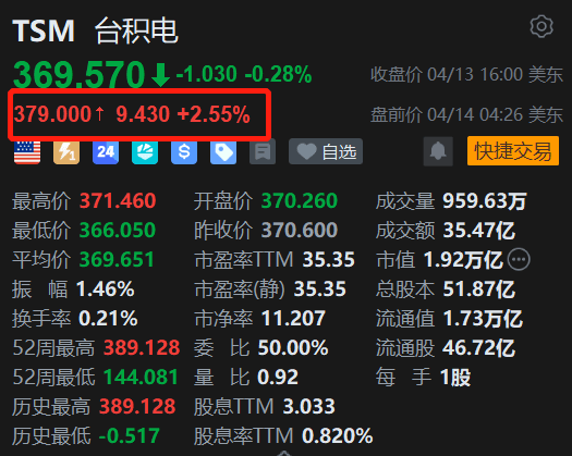 全球最大先进AI芯片制造商台积电(TSM.US)盘前涨2.55%报379美元。消息上,台积电定于4月16日(周四)公布完整的第一季度业绩。日前已公布的第一季度合并营收达到1.134万亿新台币(约合357亿美元),同比增长35.1%,首次突破万亿大关并超出公司此前给出的指引上限。