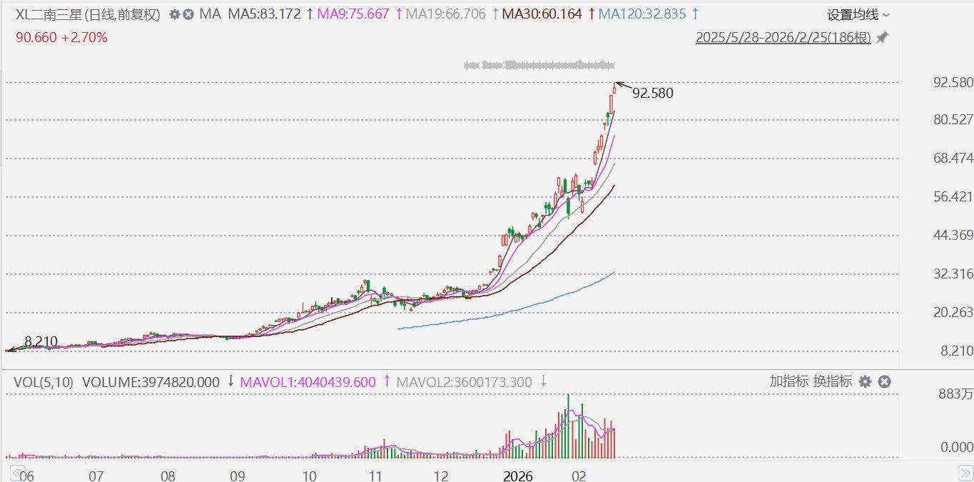 韩国综合指数今年1月22日盘中突破5000点,仅在一个多月的时间内累计上涨逾1000点。继2025年累涨75.63%牛冠全球后,韩国综合指数2026年至今再度累涨45%,继续牛冠全球。
