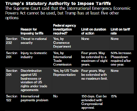 美国财政部长斯科特·贝森特表示,2026年关税收入将“几乎不会发生变化”。他补充道,特朗普政府将使用其他机制来替代这些关税措施,包括国会授予的、被称为122、232和301条款授权。