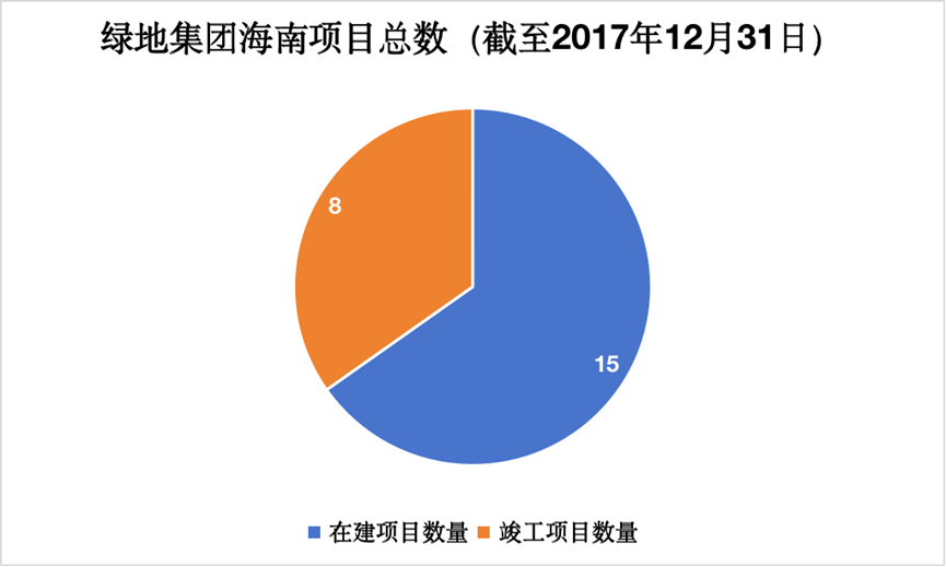 绿地也在2017年的年报中公布了其在海南岛上的第23宗项目,其中有15宗项目为在建状态,另有8宗为竣工状态,包括绿地悦澜湾、中央文化城、海长流等。