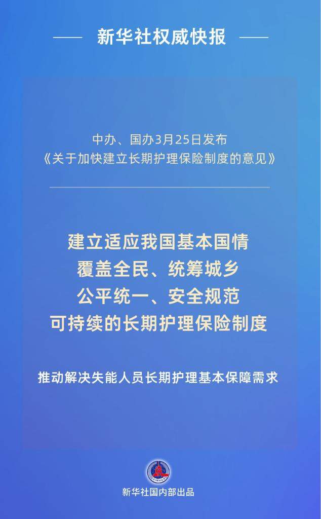 中办、国办3月25日发布《关于加快建立长期护理保险制度的意见》,建立适应我国基本国情,覆盖全民、统筹城乡、公平统一、安全规范、可持续的长期护理保险制度。这标志着长期护理保险制度从局部试点转向全国推行。