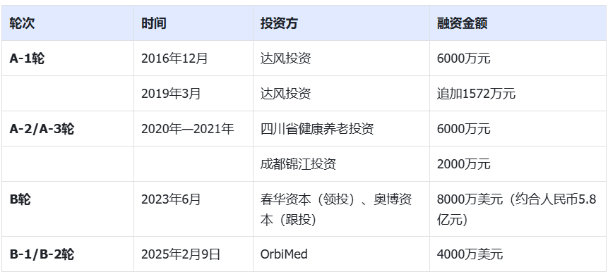 A-2/A-3轮(2020-2021年) :四川省健康养老投资、成都锦江投资(600650)等国资入场,合计8000万元。