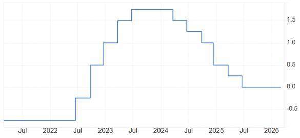 2024年3月份至今,瑞士央行持续降息,基准利率从1.75%降至目前的0%,也就是零利率.零利率状态已经持续了将近10个月,但瑞士的核心通胀率并没有反弹迹象。如果今年下半年瑞士进入通货紧缩状态,不排除瑞士央行会选择极端的负利率政策。