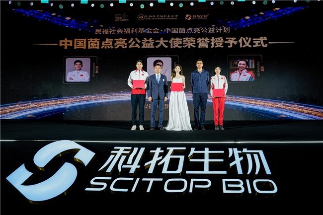 活动现场"中国菌・点亮公益计划"正式启动,民福社会福利基金会授予花样游泳世界冠军呙俐,短道速滑世界冠军刘少昂,MBB品牌代言人张予曦"中国菌点亮公益大使"称号。该公益计划承诺:科拓生物每售出一条益生菌产品,即向留守儿童捐赠一分钱,以点滴爱心点亮希望之光。