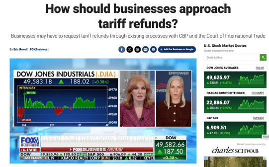 △福克斯商业台等媒体已经在普遍报道,企业应该如何追索退税
