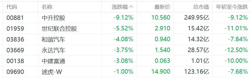 港股市场汽车零售商股集体下跌,其中,中升控股跌超9%,世纪联合控股跌超5%,和谐汽车跌4%,永达汽车、中建富通跌超3%。消息面上,香港新一份财政预算案宣布,电动私家车的首次登记税宽减,包括“一换一”计划,会在下月31日届满后不再继续。