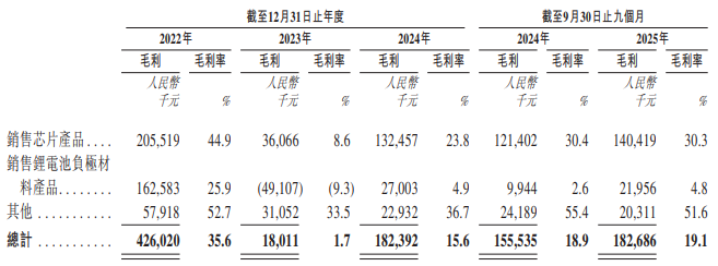 毛利率方面:整体毛利率从2022年的35.6%骤降至2023年的1.7%,2025年前三季度回升至19.1%。尽管呈现修复趋势,但盈利水平依然脆弱。分业务看,芯片产品毛利率2025年前三季度为30.3%,仍略低于行业水平;锂电池负极材料产品毛利率则长期低迷,2025年前三季度为4.8%,且公司在产能过剩背景下规模不占优,短期难以追赶头部企业。