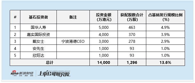 中资保险机构国华人寿投资5000万港元,为其中唯一的财务投资者,但是其过往参与港股项目较少,缺少显著的市场影响力。