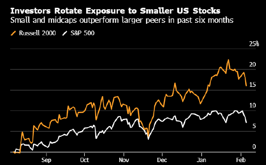 由于担心人工智能可能带来的颠覆性影响,投资者近期纷纷抛售科技股,转而寻找可能受益于特朗普政府降低生活成本努力的交易机会。对增长前景改善更为敏感的一大类公司也跑赢大盘。
